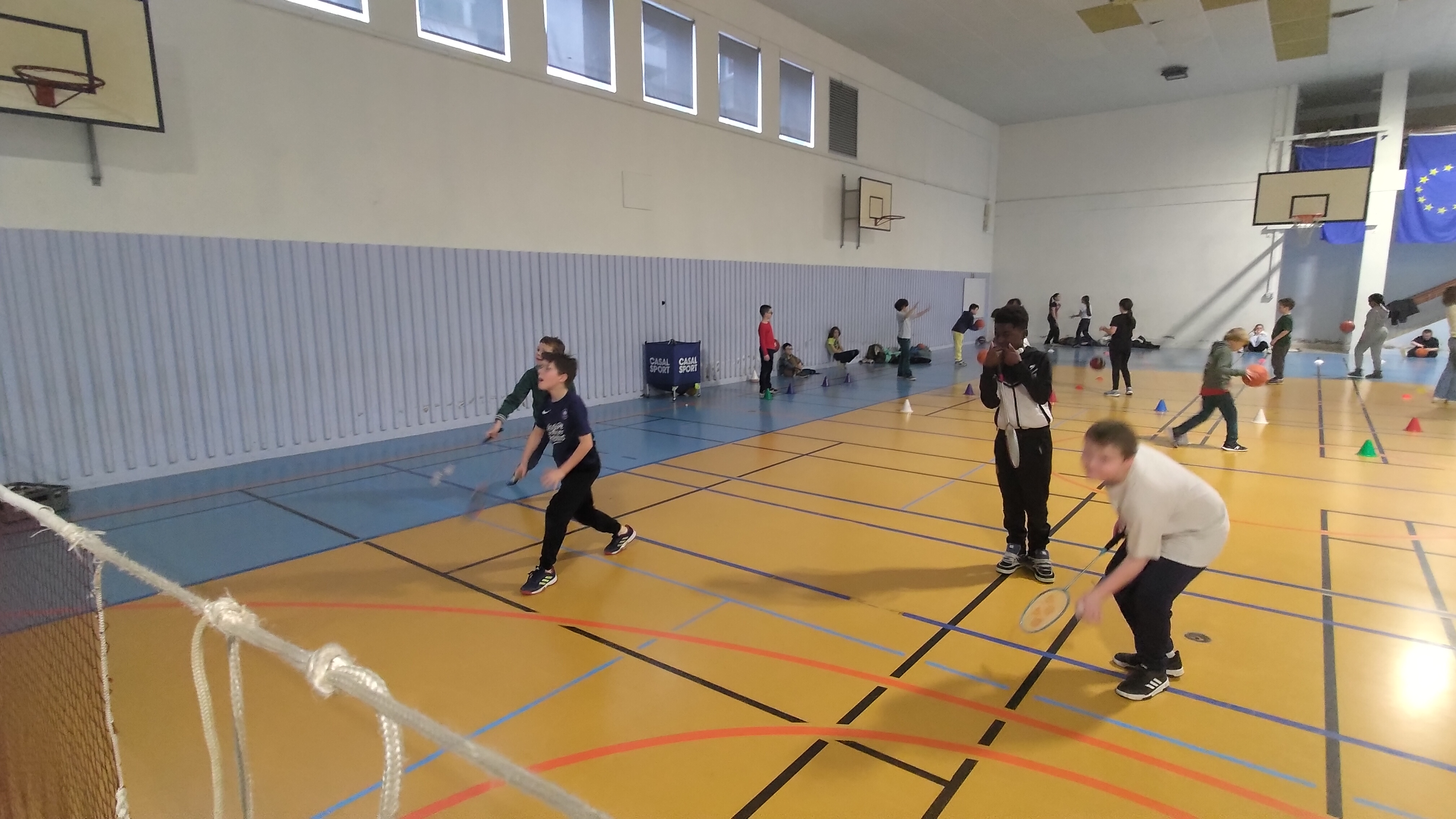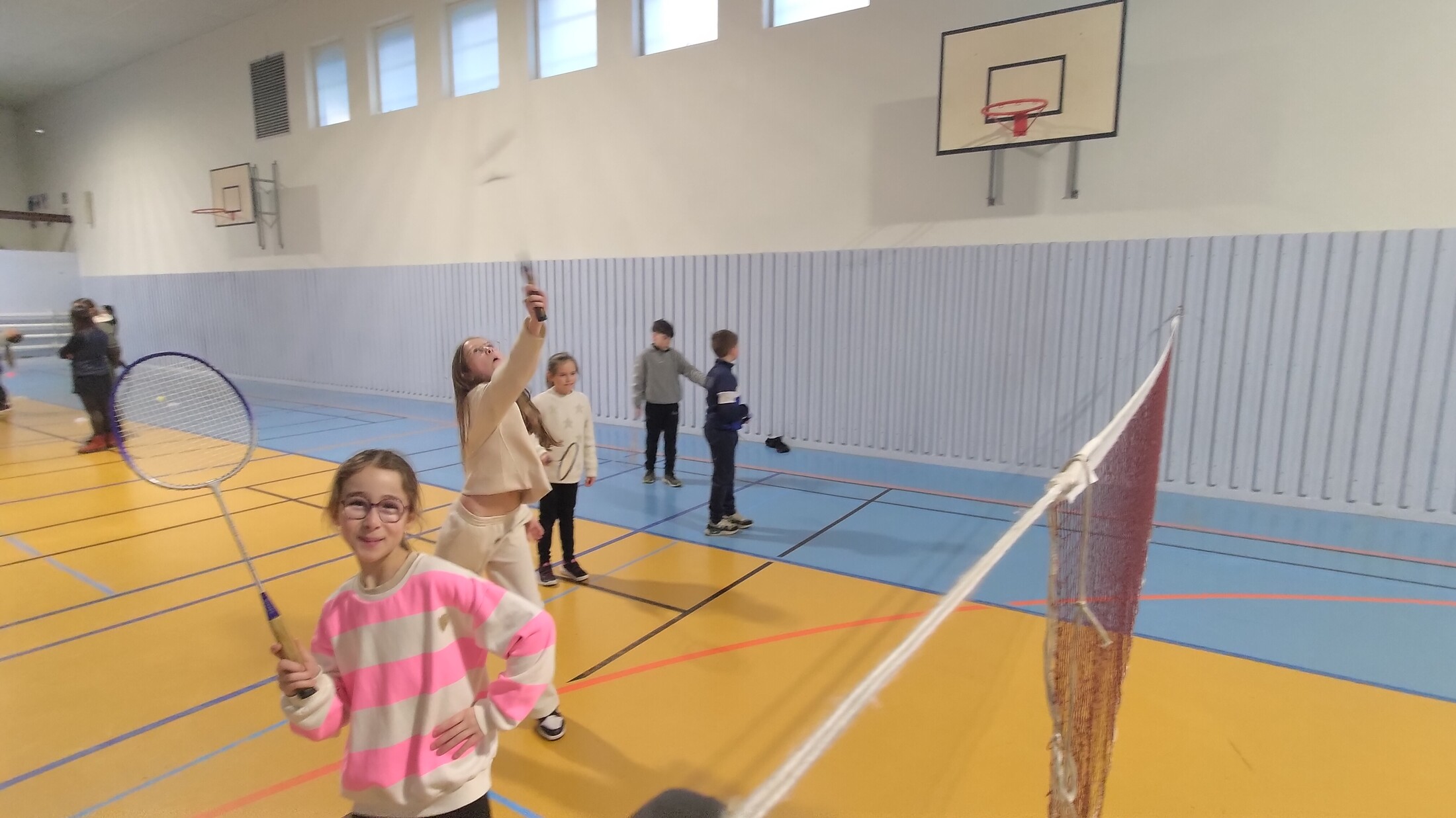 Pari ailleurs, ils ont aussi accès au gymnase et ont eu la chance de découvrir une nouvelle activité : le badminton. Ils apprennent les bases de ce sport : tenir correctement la raquette, servir, échanger le volant et respecter les règles du jeu. Cette initiation développe leur coordination, leur concentration et l’esprit d’équipe.